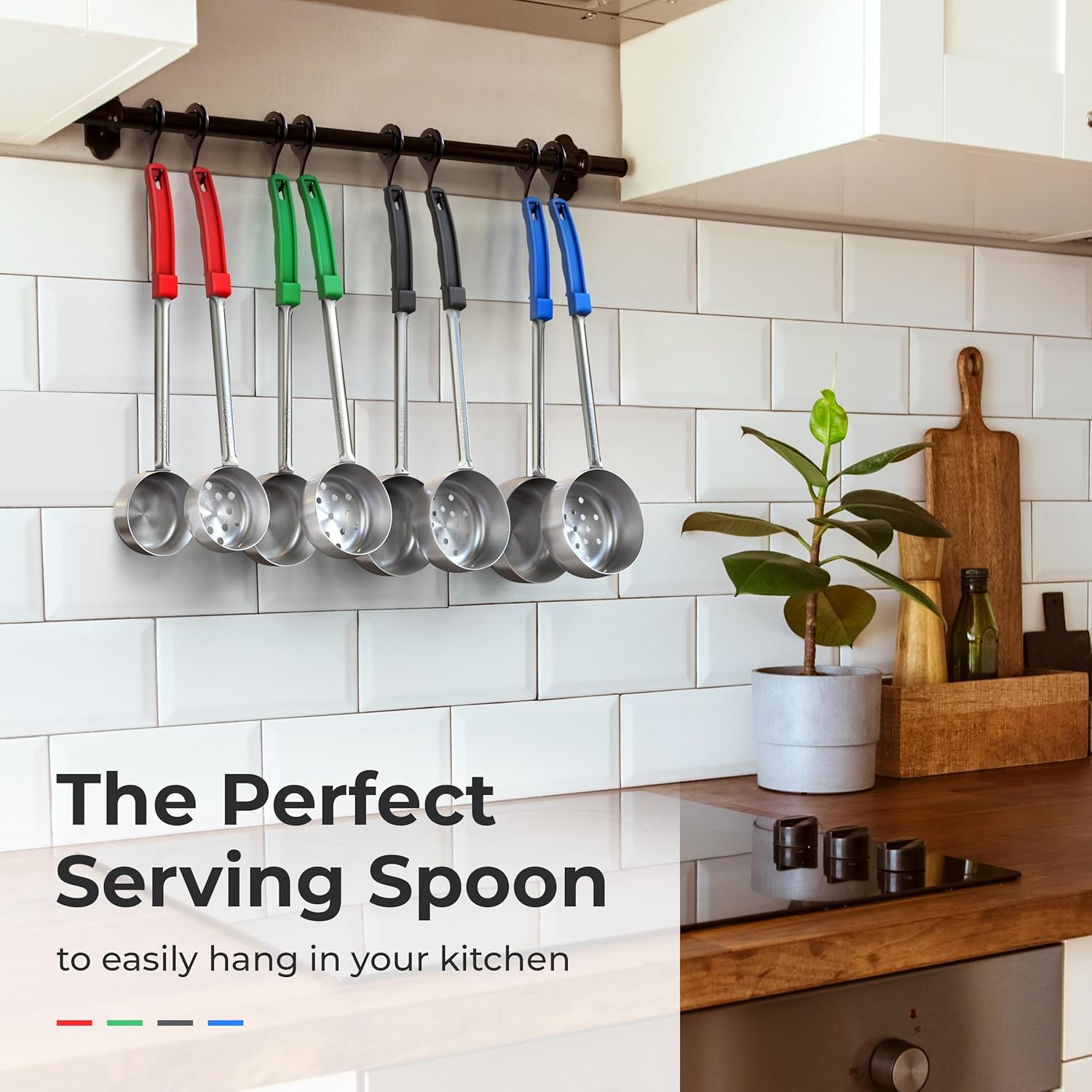 EASY IDENTIFICATION, EASY USE – Never fumble for the right spoon again! Our color-coded system ensures you grab the correct serving spoon at a glance. Plus, the handy hook on each handle allows for convenient storage on the side of serving dishes