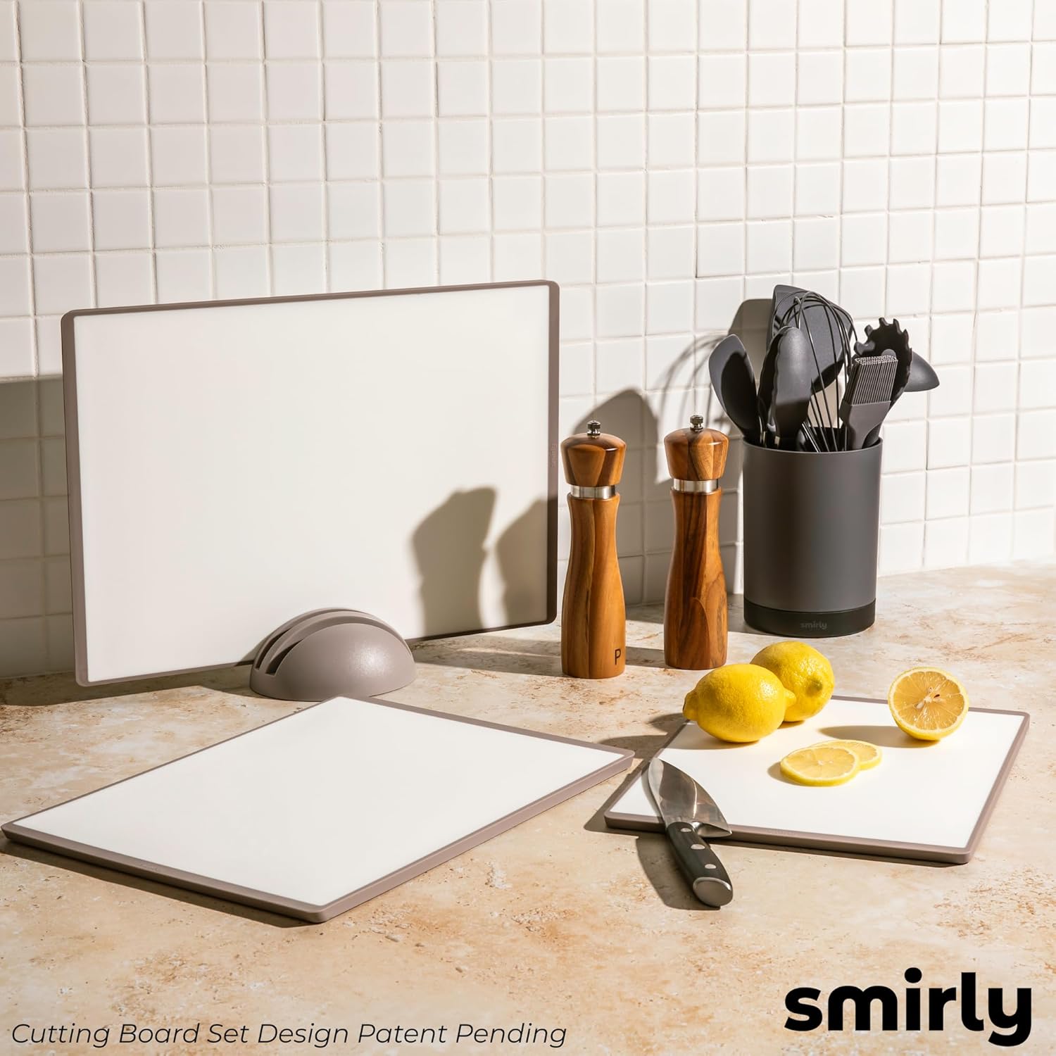 Great set of cutting board. Things I like:- Feet on the bottom of the cutting board that keep the board from slipping, and raises the board slightly off the counter to help drying- the bevel around the cutting board makes it much easier to pick up- Cutting surface protects my knives. Over time, the cutting boards do get slice marks on them, but that is part of protecting the knives- somehow liquids mostly pool on the cutting board and don’t run over the edgeThings to consider:- I wash / rinse the cutting boards between many of the things I am chopping. I have found that I have to wipe the board with a towel to dry quickly, or put on dish drain when I have more time. My towel gets pretty wet during the process of preparing a meal.I just bought another set of the cutting boards because I burned 2 of the cutting boards when I pulled very hot pans out of the broiler and put them on the cutting boards. I discolored/burned a part of the cutting boards. I have not had this problem with pans coming out of a 375 degree F oven.