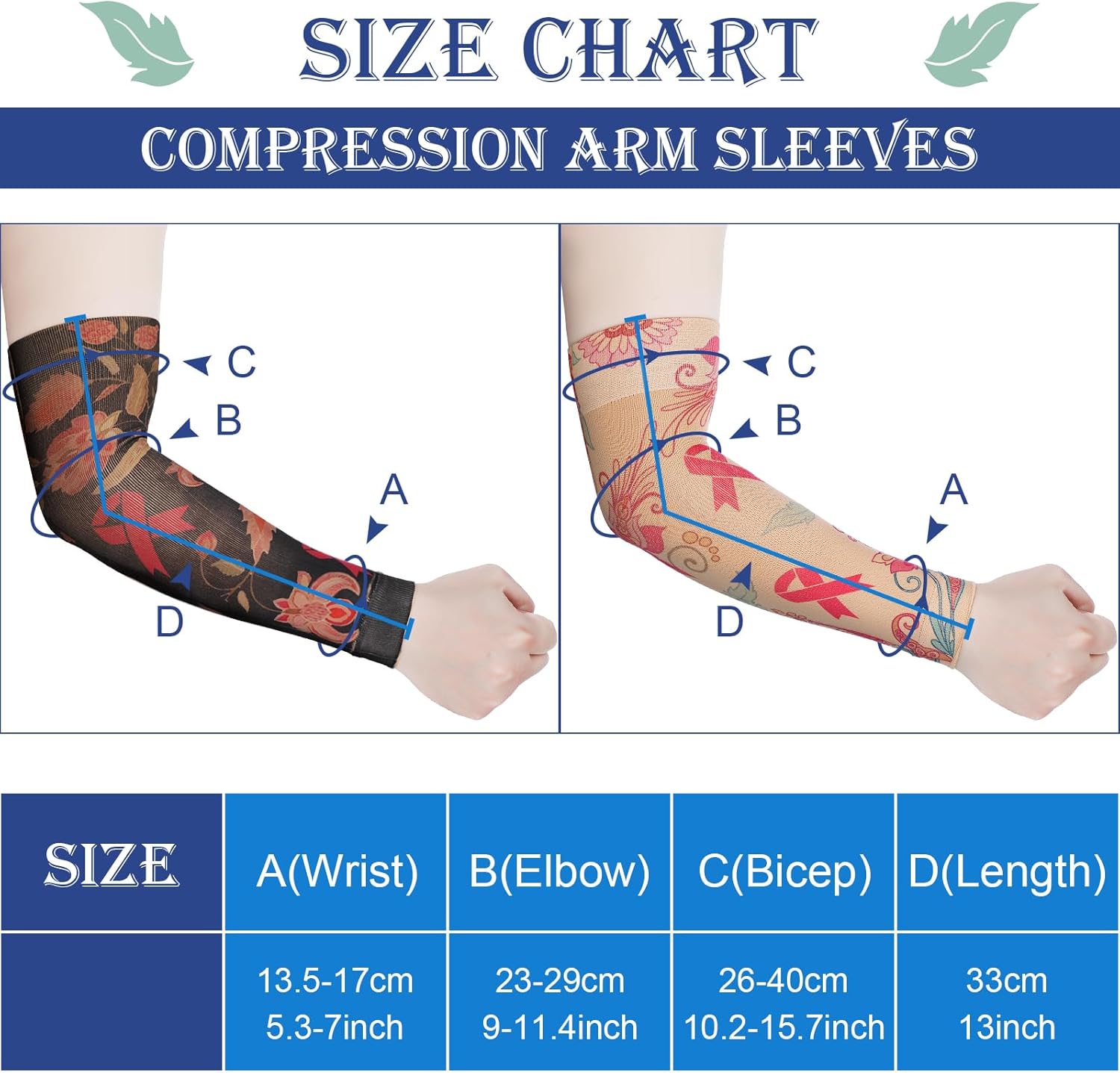 Breast Cancer Awareness Sleeves: the floral compression arm sleeves feature a pink ribbon design, raising awareness for breast cancer and showing support for individuals affected by the disease; They are suitable for both men and women, symbolizing love, hope, and belief in the fight against cancer, effortlessly adding charm to most occasions; These sleeves are suitable for individuals seeking to make a meaningful statement and show their solidarity with breast cancer warriors