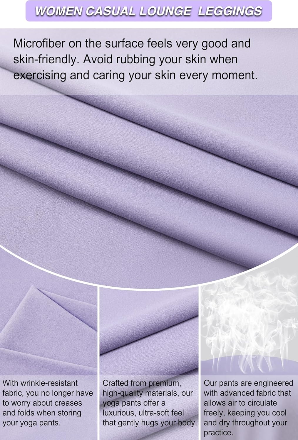 I am happy with the leggings. The fabric is very soft and feels similar to a peach the light purple is muted and not too bright. I’m 5’2″ 130lbs and I ordered XL since I don’t like things tight. The top edge of the waistband is a bit tight but the rest fits perfectly. I would follow the size chart in the pictures and go by the larger end of the range. I wear short socks and the length is just long enough to meet the socks.